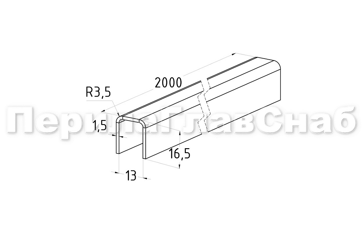 Профиль нержавеющий П-образный 16.5х13х1.5х2000 мм, под стекло 12 мм полированный. Марка стали - AISI 304
