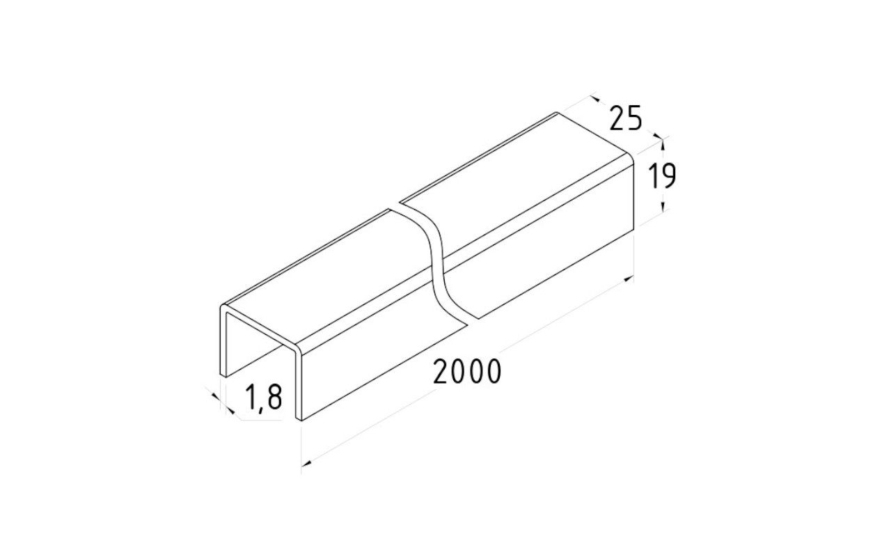 Профиль П-образный t=1,5 мм под стекло 20 мм, полированный, длина 2000 мм, марка стали - AISI 304