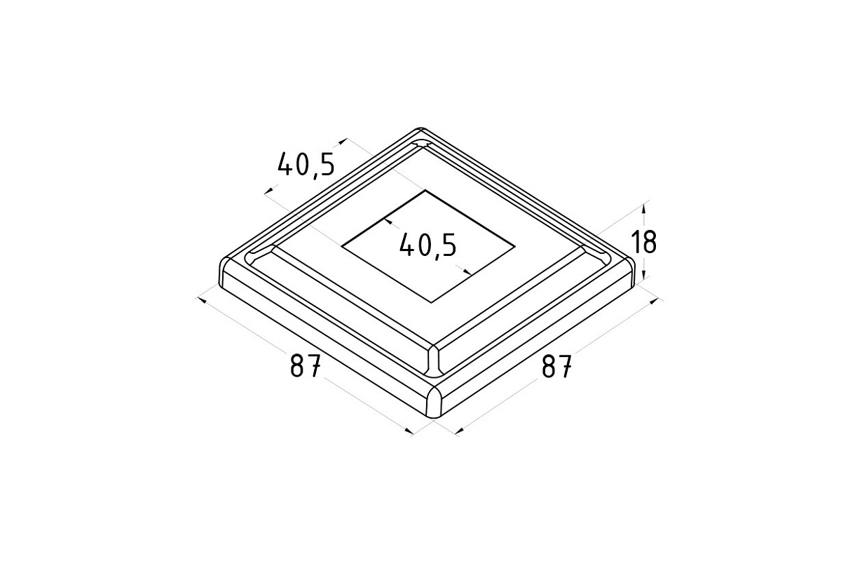 Низ стойки 87х87 мм, S=0.8, под 40х40 мм. Деталь полированная, штампованная.