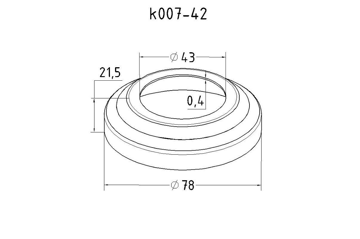 Низ стойки Ø42.4 мм, S=0,4 мм, внешний Ø78 х12 мм, полированный 400, AISI 304 ФИГУРНАЯ k007-42