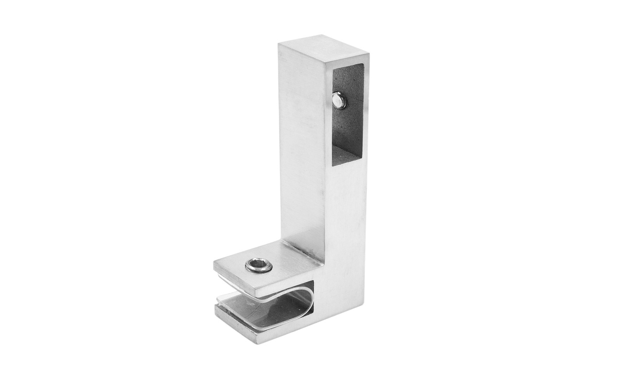 Коннектор предназначен для крепления профильной трубы 30х10 мм к стеклу в горизонтальной ориентации параллельно стеклу, при монтаже штанг верхней обвязки душевых кабин.