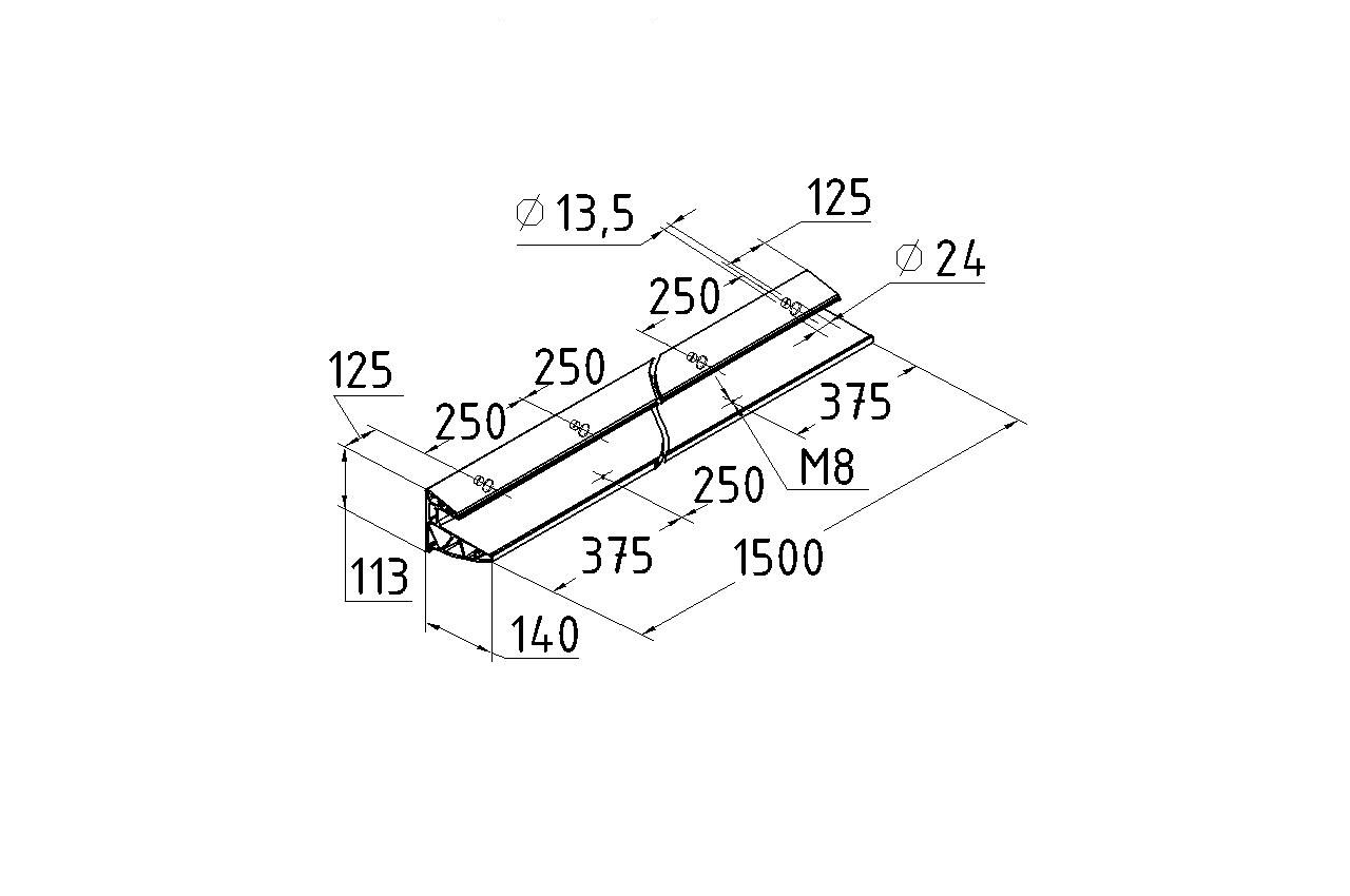 2. Просверлить отверстия диаметром согласно выбранным анкерам (рекомендованы М12х18х125 мм), установить профиль k300-3 и затянуть;