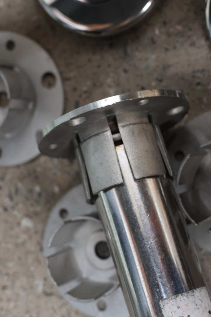 Цанга Ø38.1 мм, низ 8х82 под анкер 8 мм, (AISI 316), (для установки на деревянную ступень, бетон, крепление на 3 анкера М8) k026-3