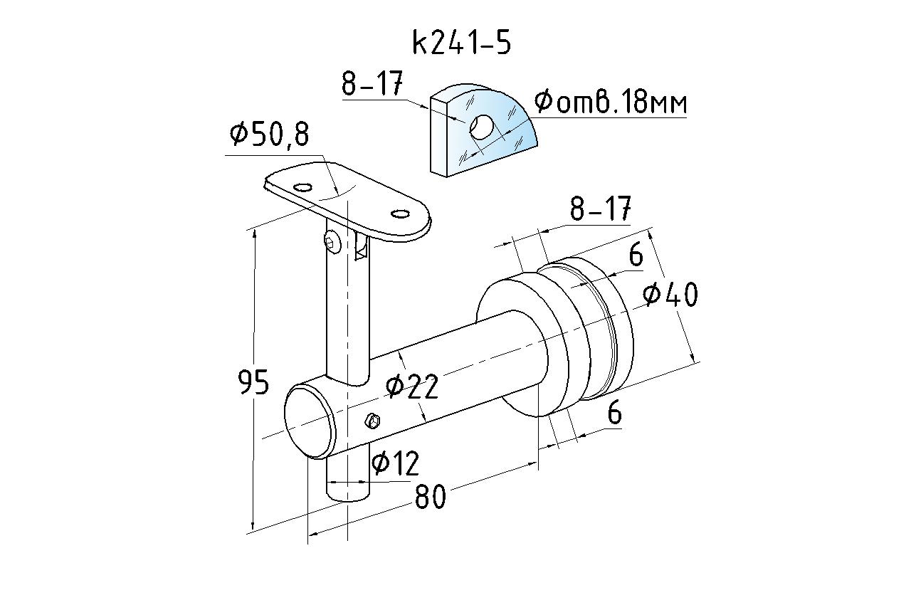 k241-5 выносной держатель поручня на стекло 8-20 мм, регулируемый, с ложементом, полированный, (AISI 304) под отверстие в стекле Ø17-18 мм