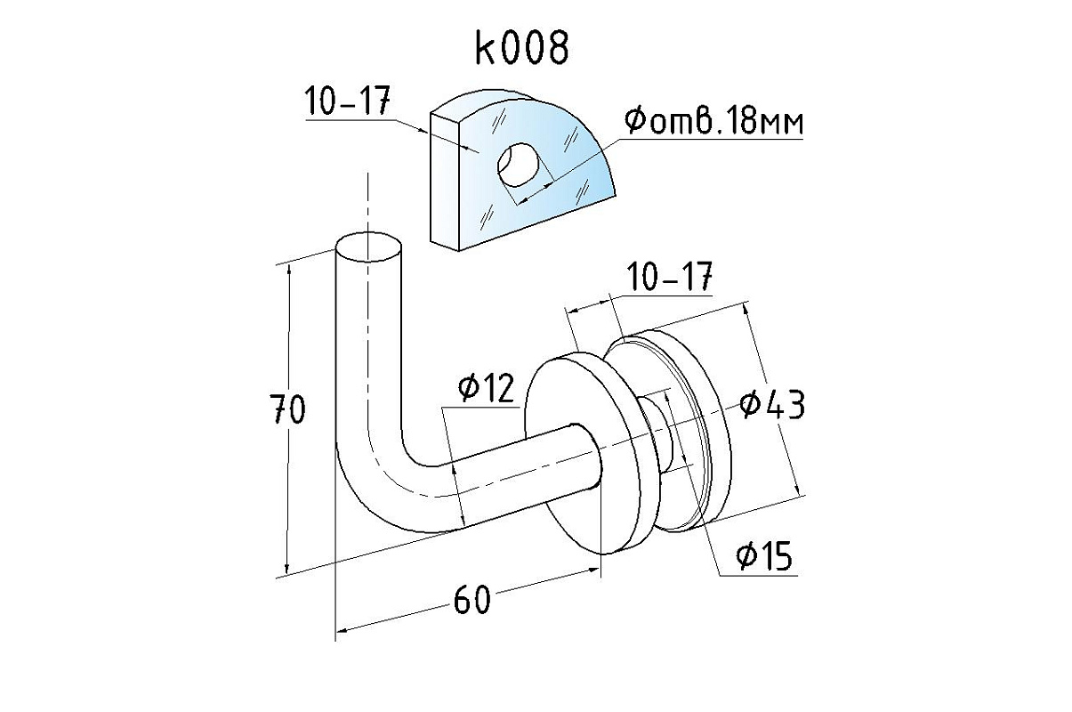 Держатель поручня на стекло 10-17 мм, полированный (AISI 304) k008