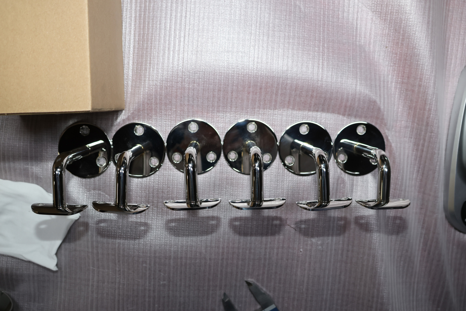 К стене стальной держатель крепится фланцем на три самореза Ø3 мм.