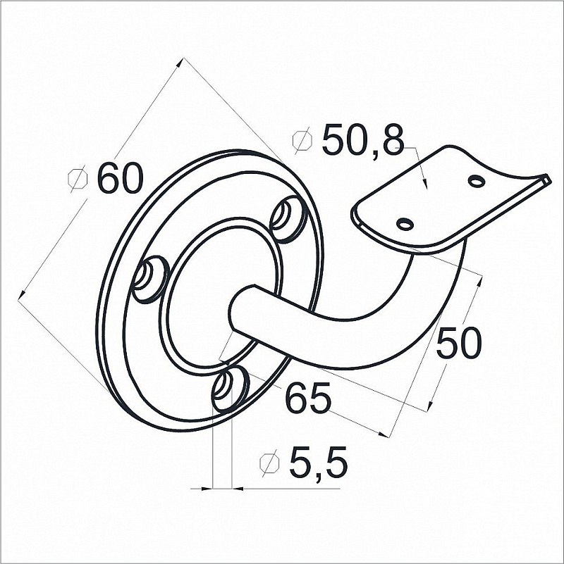 под Ø50.8 мм, вынос 65х65, Ø60х3 мм, литой, 25х45х2 мм