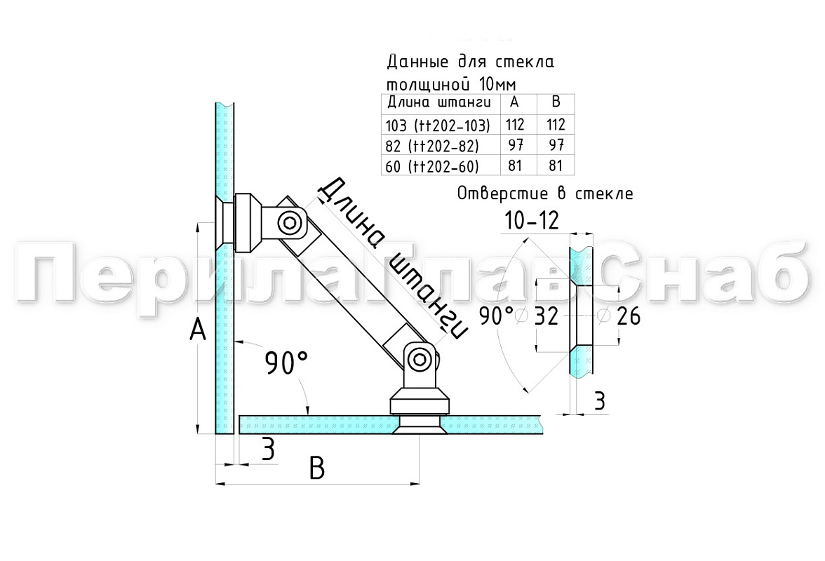Крепление стекло-стекло, штанга 82 мм, под зенковку tt202-82 SSS