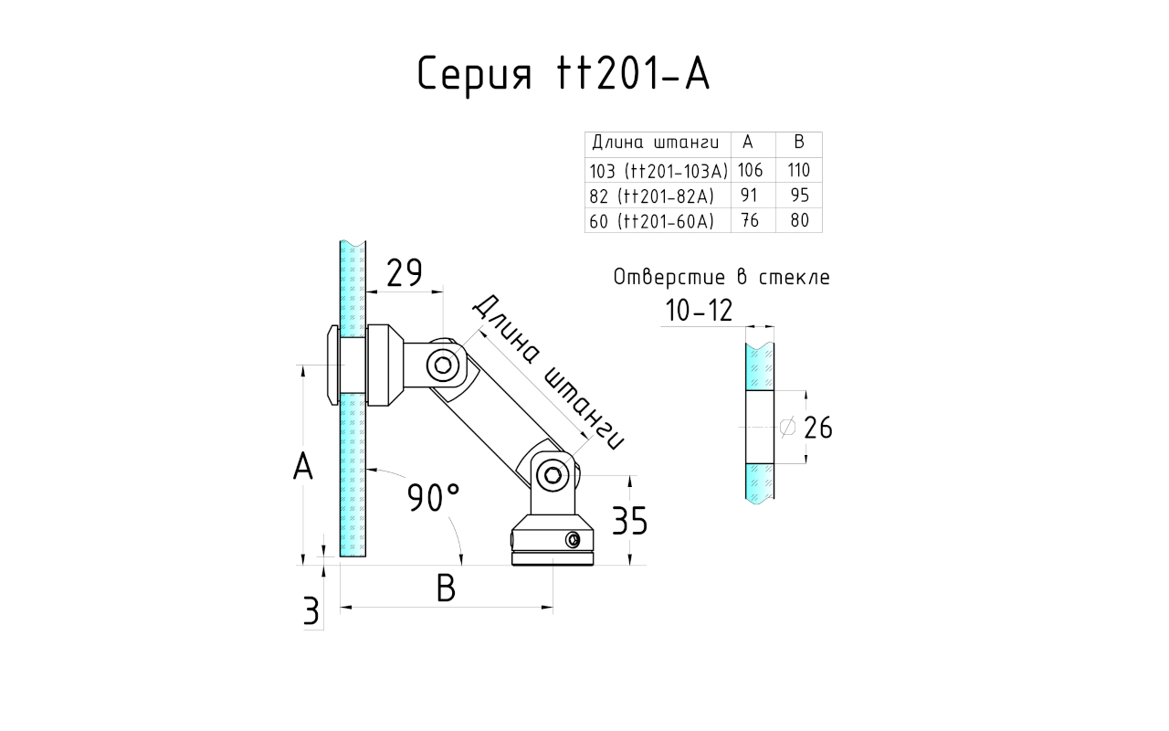 Крепление стекло-стена, штанга 103 мм, без зенковки tt201-103А SSS