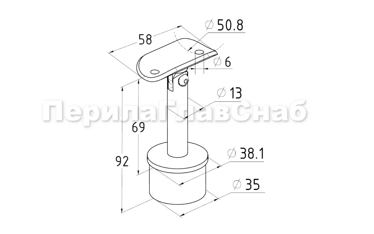 Наконечник палец (солдатик) с системой фиксации из алюминия в стойке Ø38.1 мм, полированный, нержавеющий (AISI 304) k041 купить в Красноярске