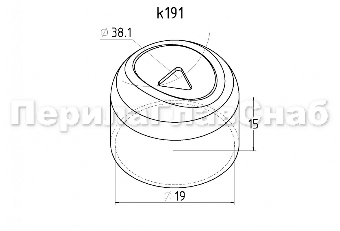 Наконечник штампованный (СПС) прямой 90° на трубу Ø19 мм, для поручня Ø38.1 мм, полированный, нержавеющий, 600 Grit, AISI 304, k191