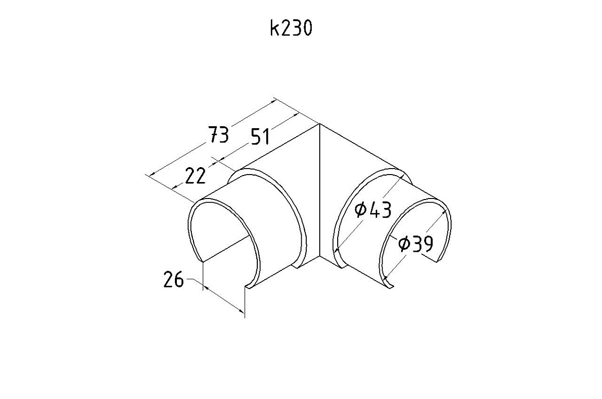 Отвод поручня 90°, с вставками для трубы Ø42.4 мм, полир., (AISI 304) k230-2