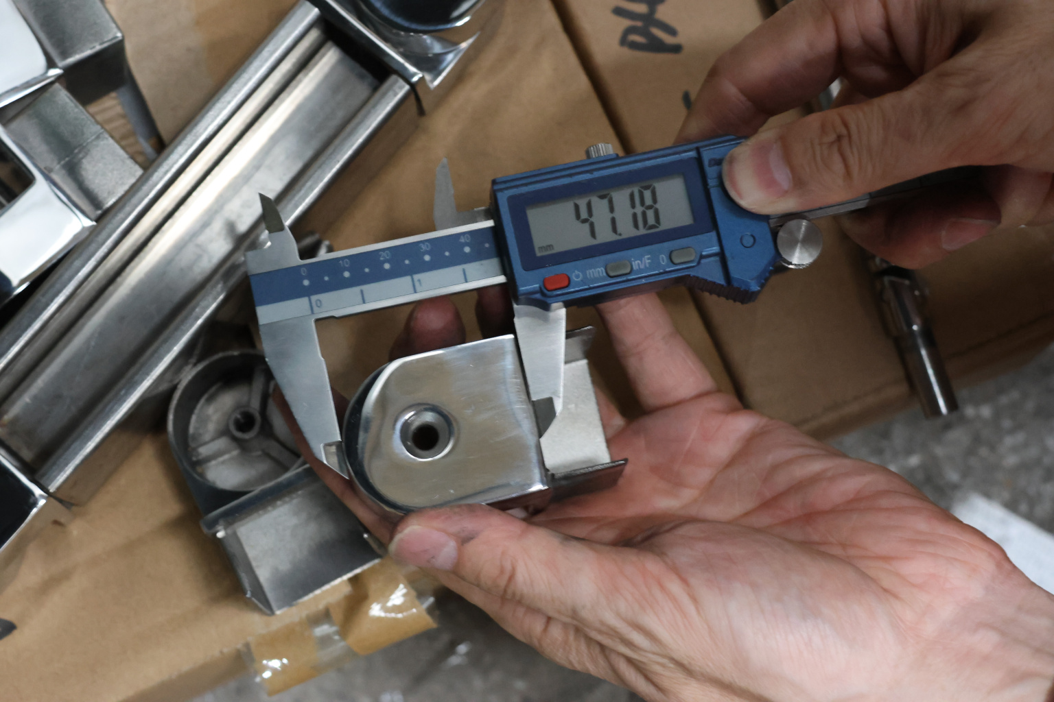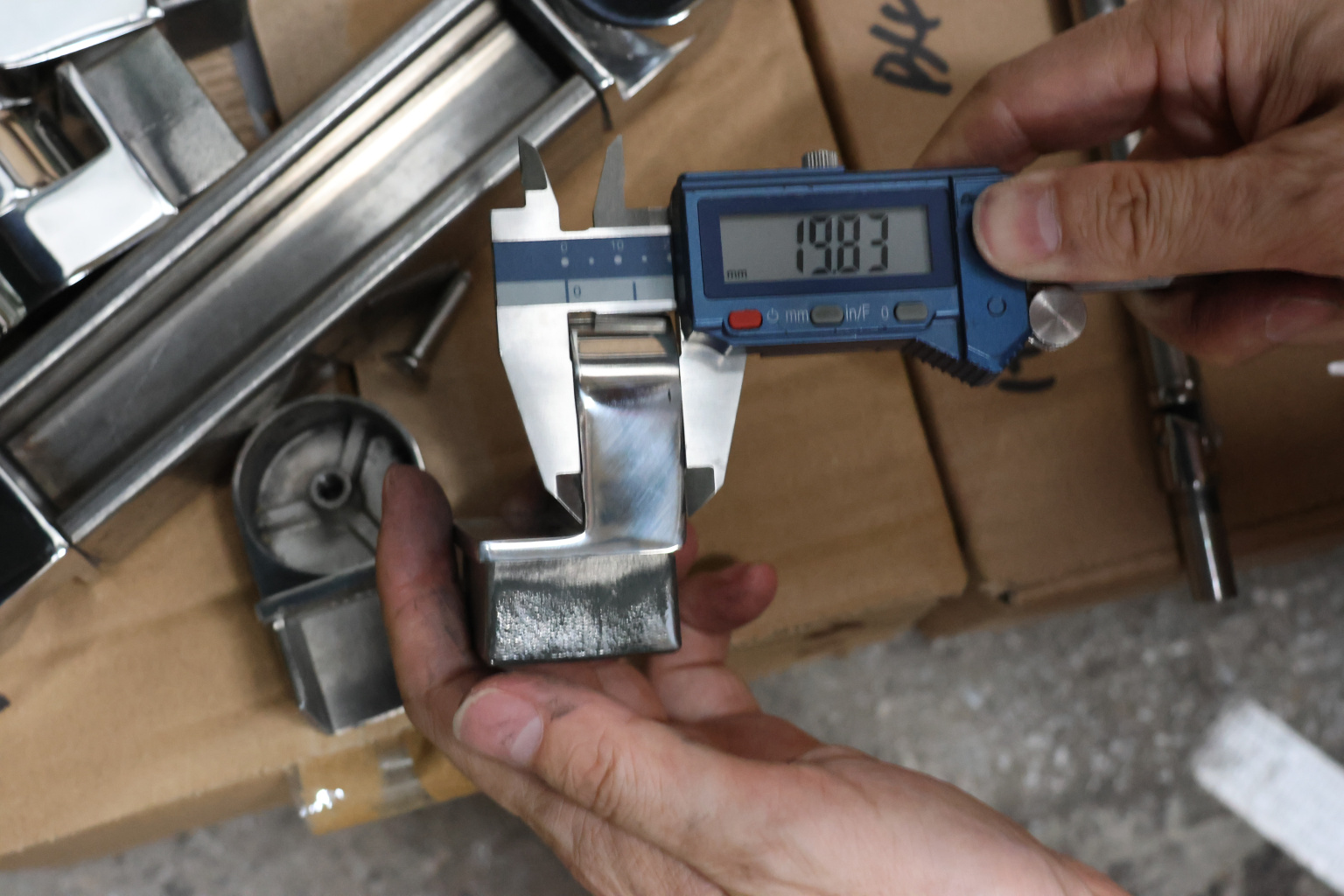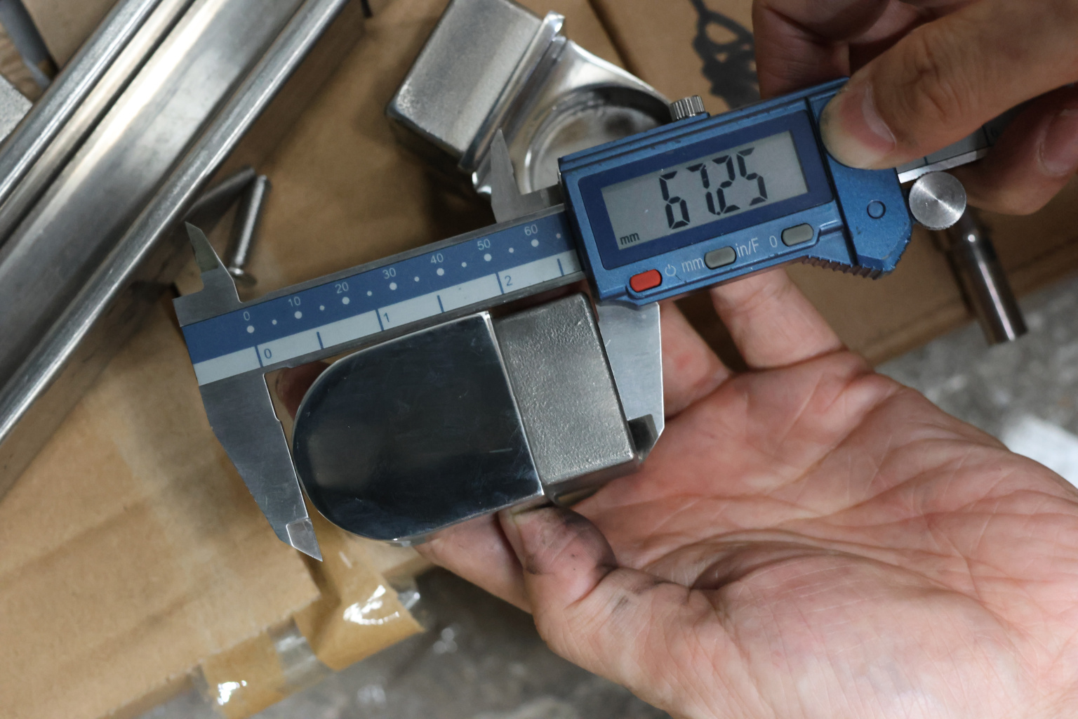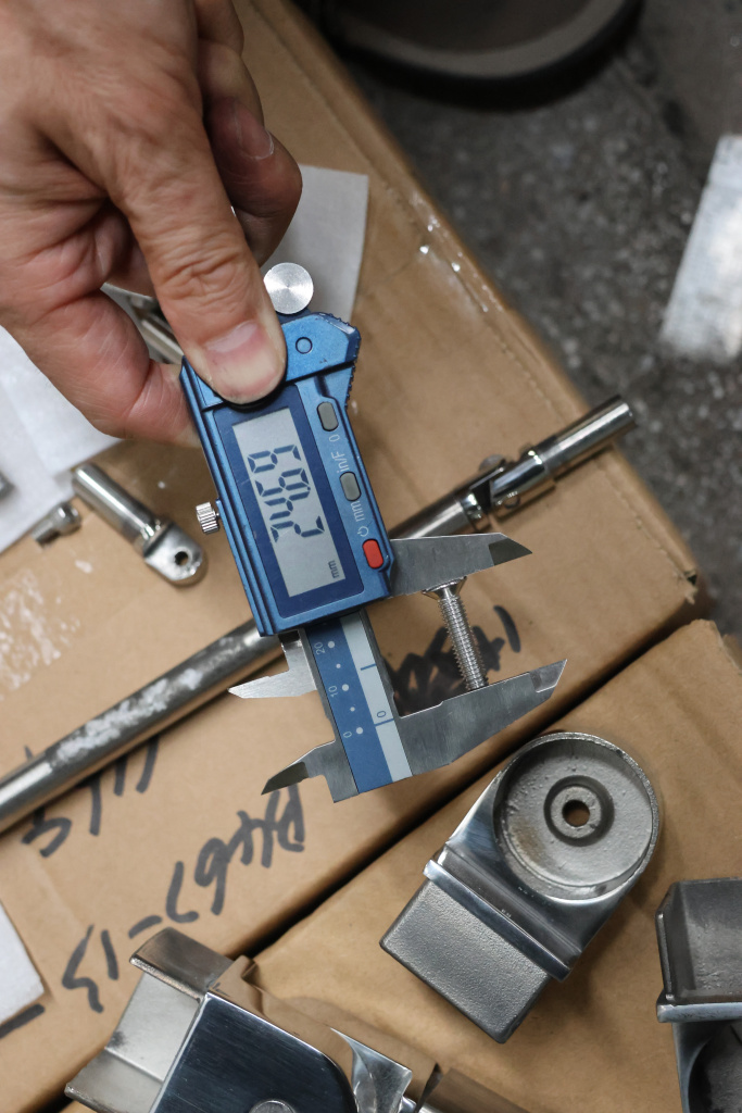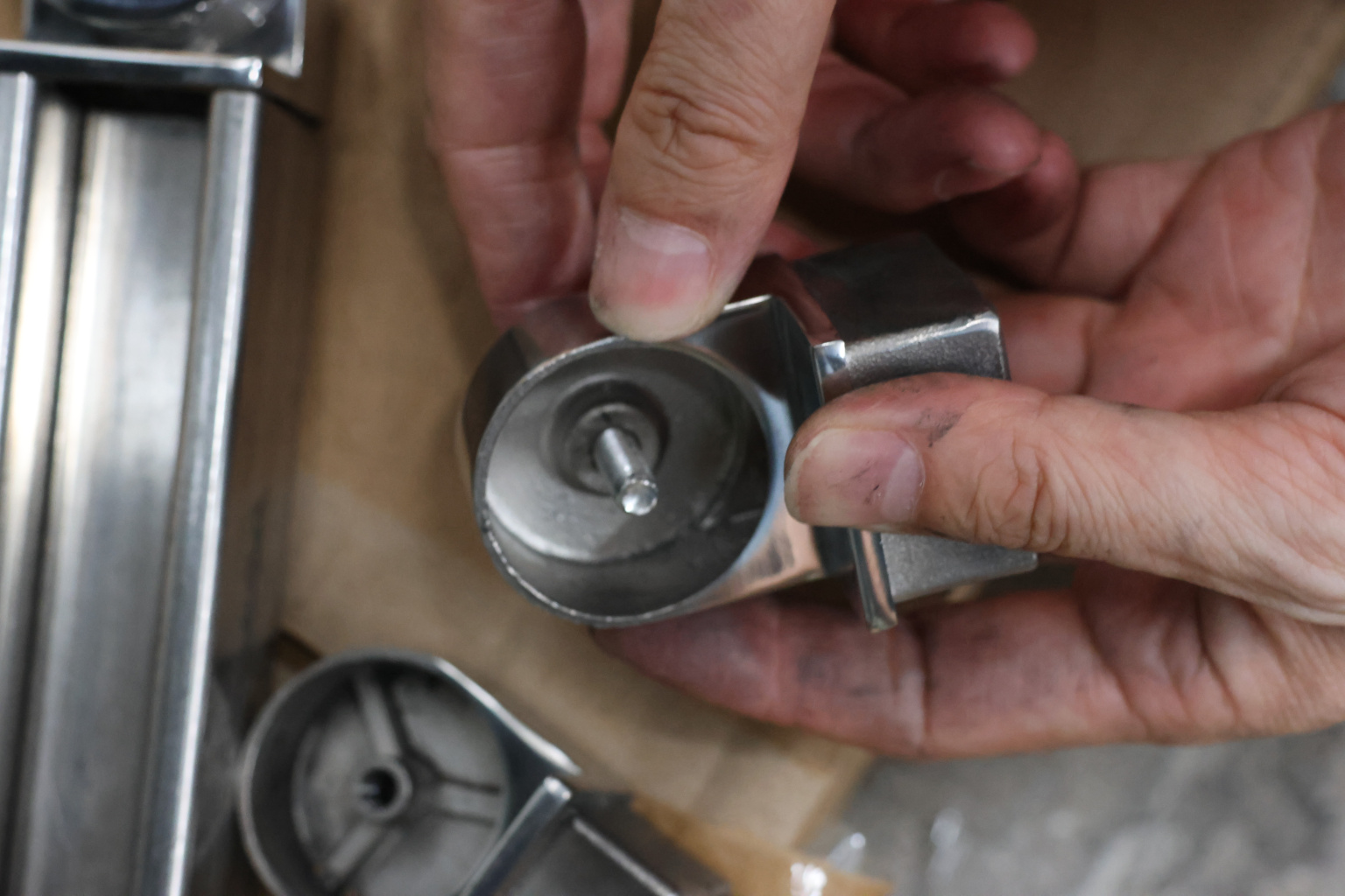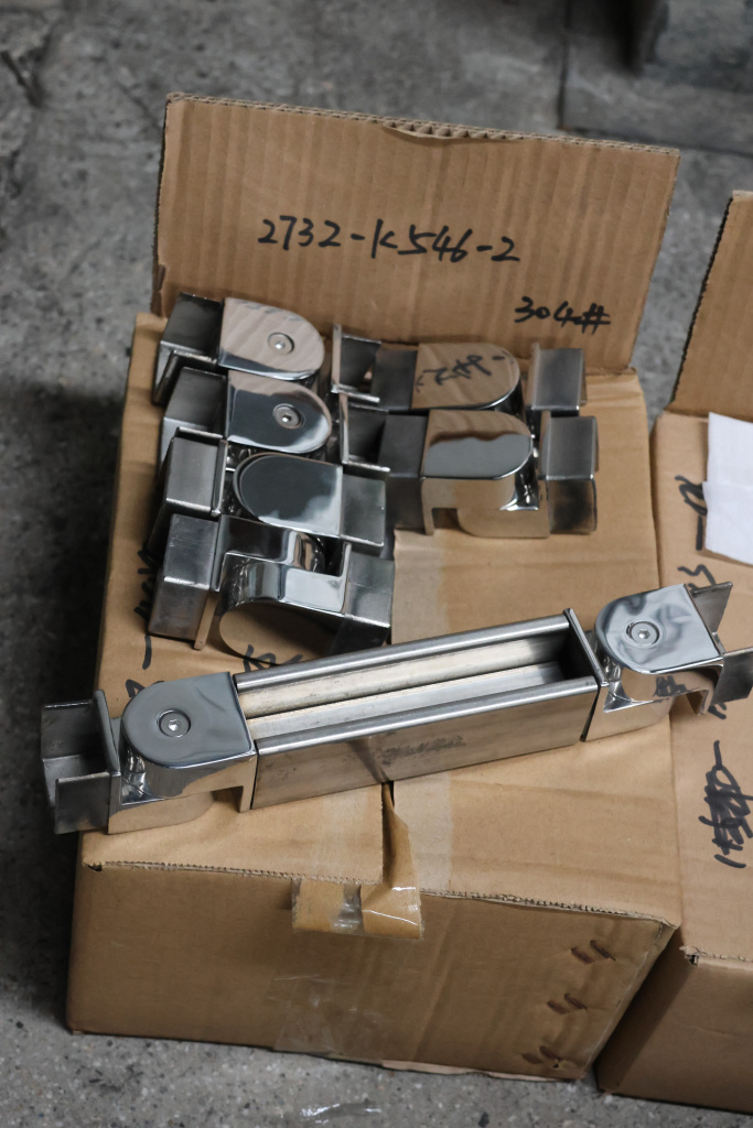 Отвод для поручня с пазом 40х40 мм, шарнирный, полированный. Марка стали - AISI 304