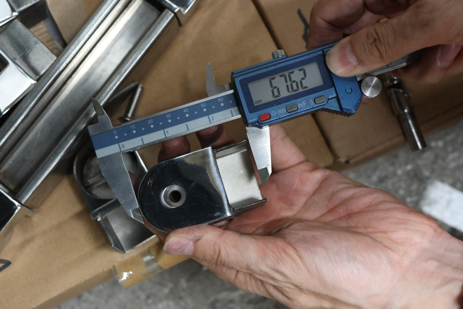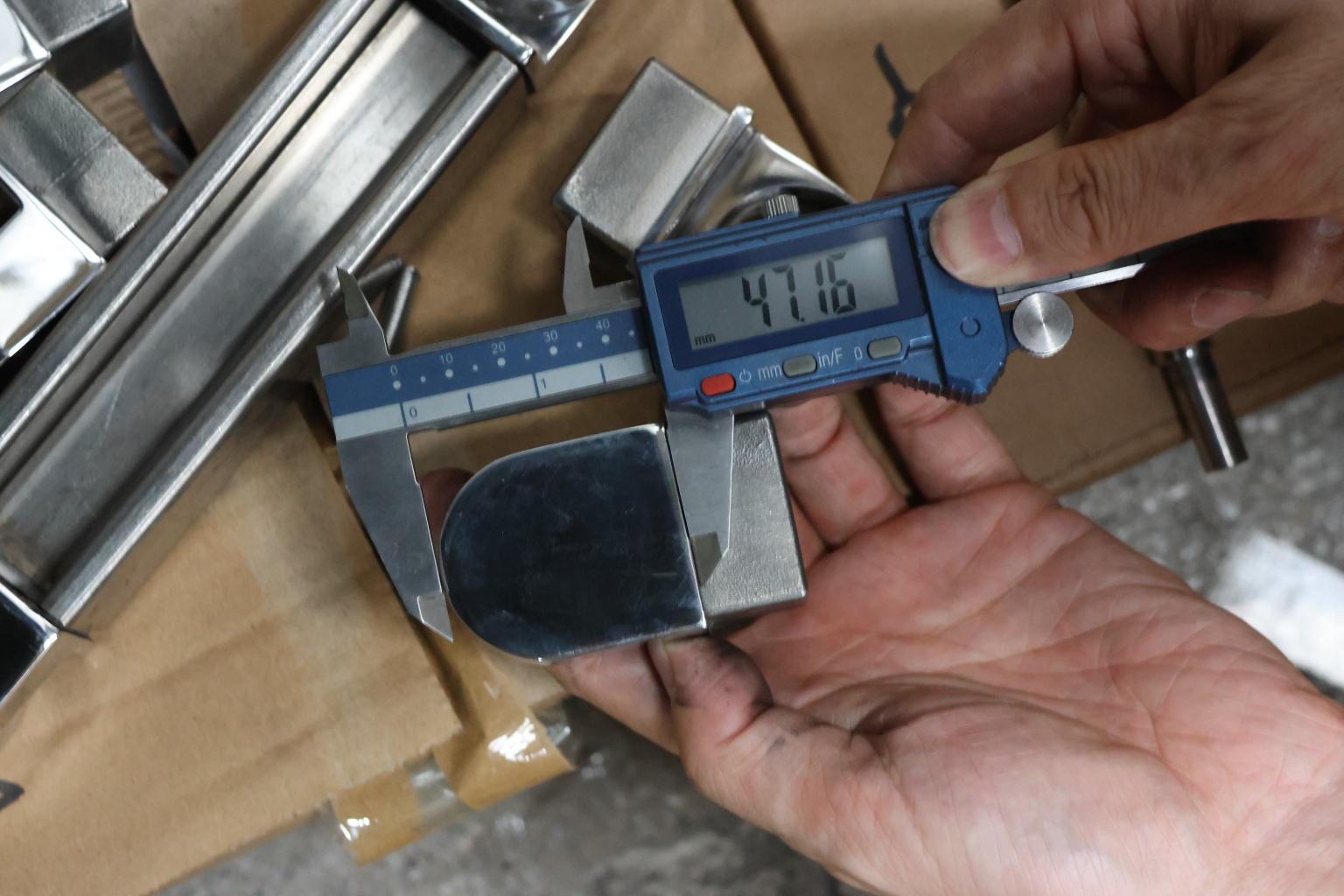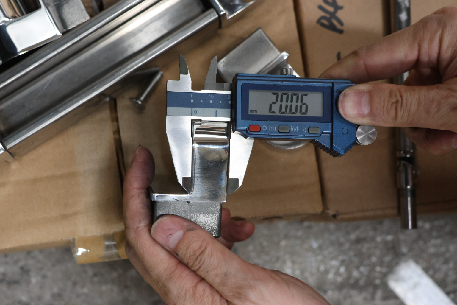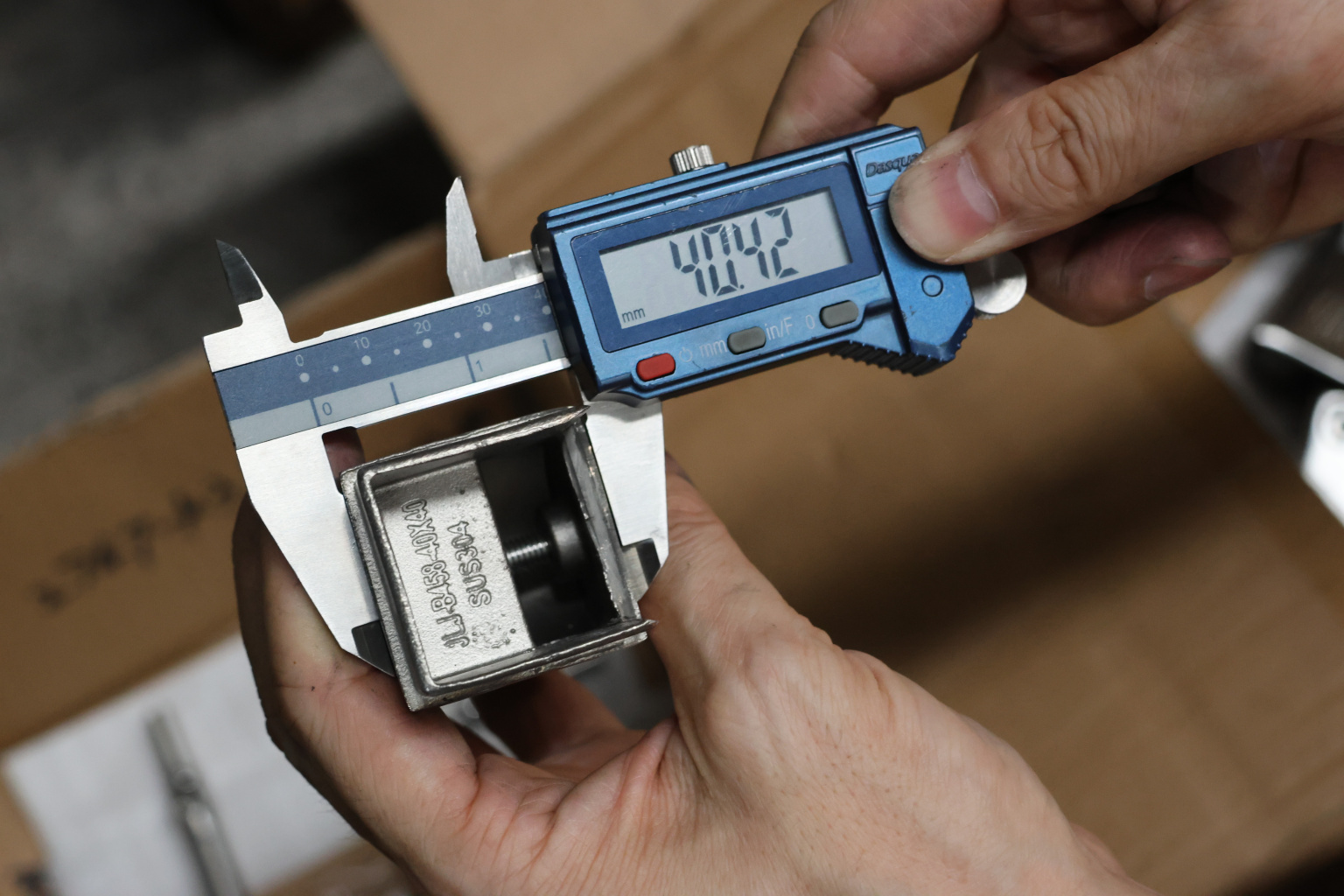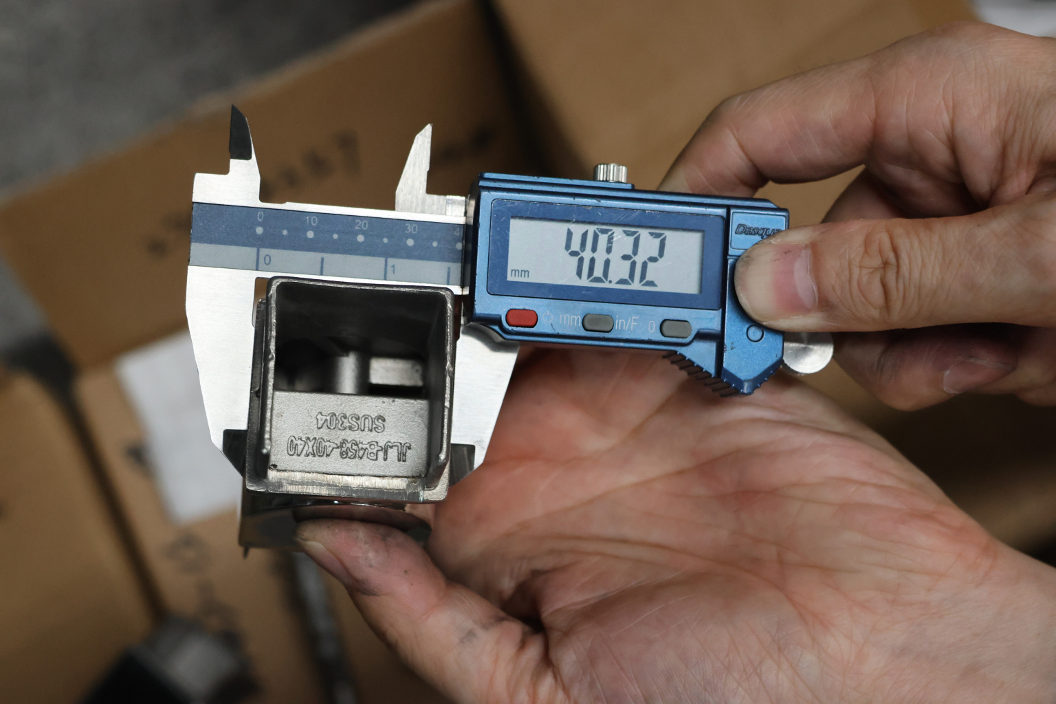 Отвод для поручня с пазом 40х40 мм, шарнирный, полированный. Марка стали - AISI 304