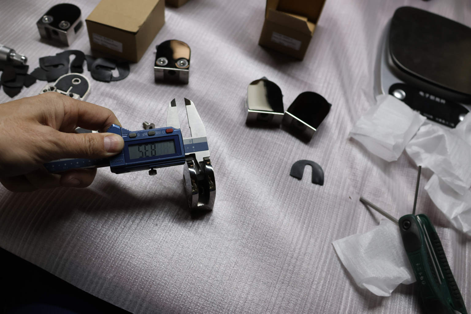 Стеклодержатель литой, под стекло 8-10 мм (4+4 мм), на плоскость 40х23х48 полированный (AISI 316) k002-4