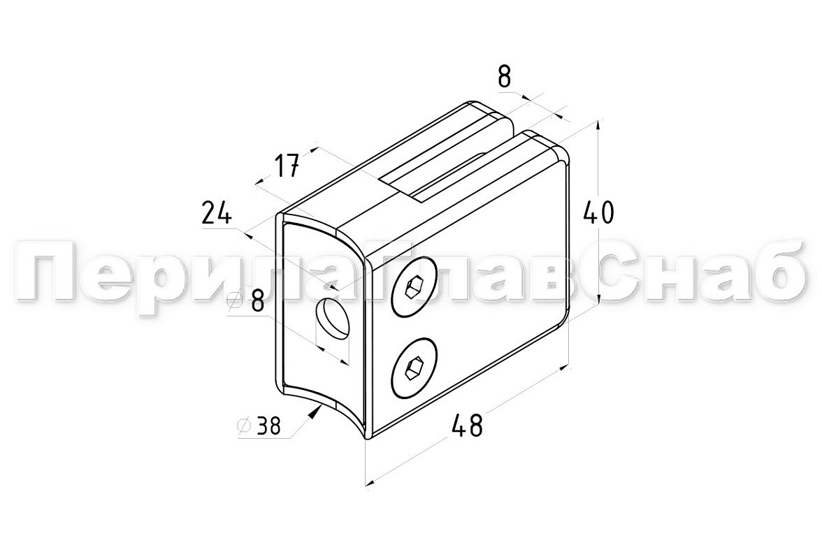 Стеклодержатель штампованный под стекло 8 мм (4+4 мм), под стойку Ø38.1 мм 40х24х55, полированный (AISI 304) k038 купить в Красноярске