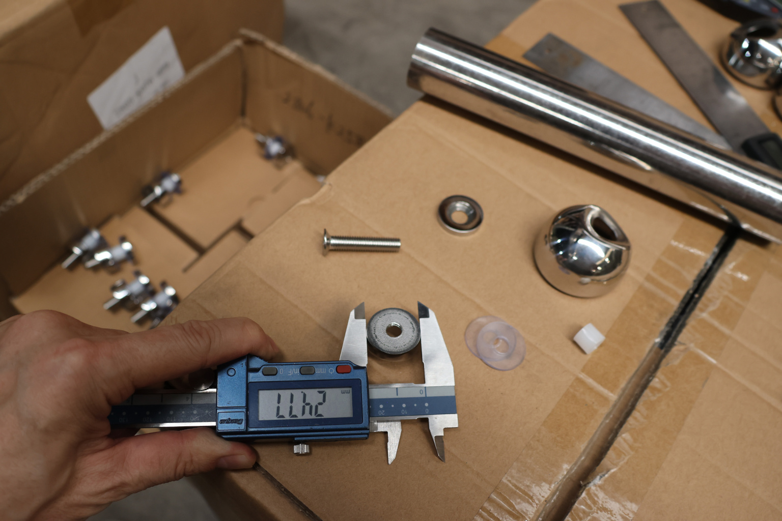 Комплект торцевого крепления несущего стекла, шпилька М16 AISI304, гайка-шайба Ø50х10мм, с регулировкой вылета 25-39мм, полированный, AISI 304 k277-11