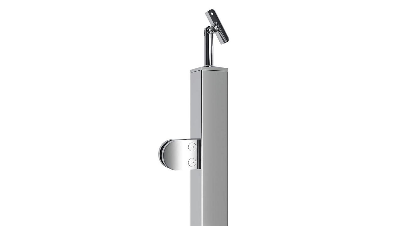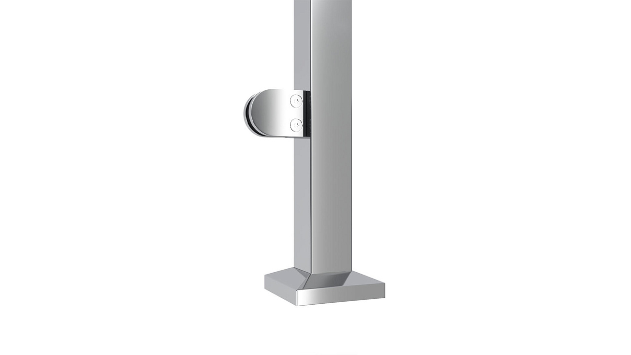 Cтойка квадратная 40х40: 2 литых зажимн. стеклодержателя, полированная, высота 950 мм (aisi 304)
