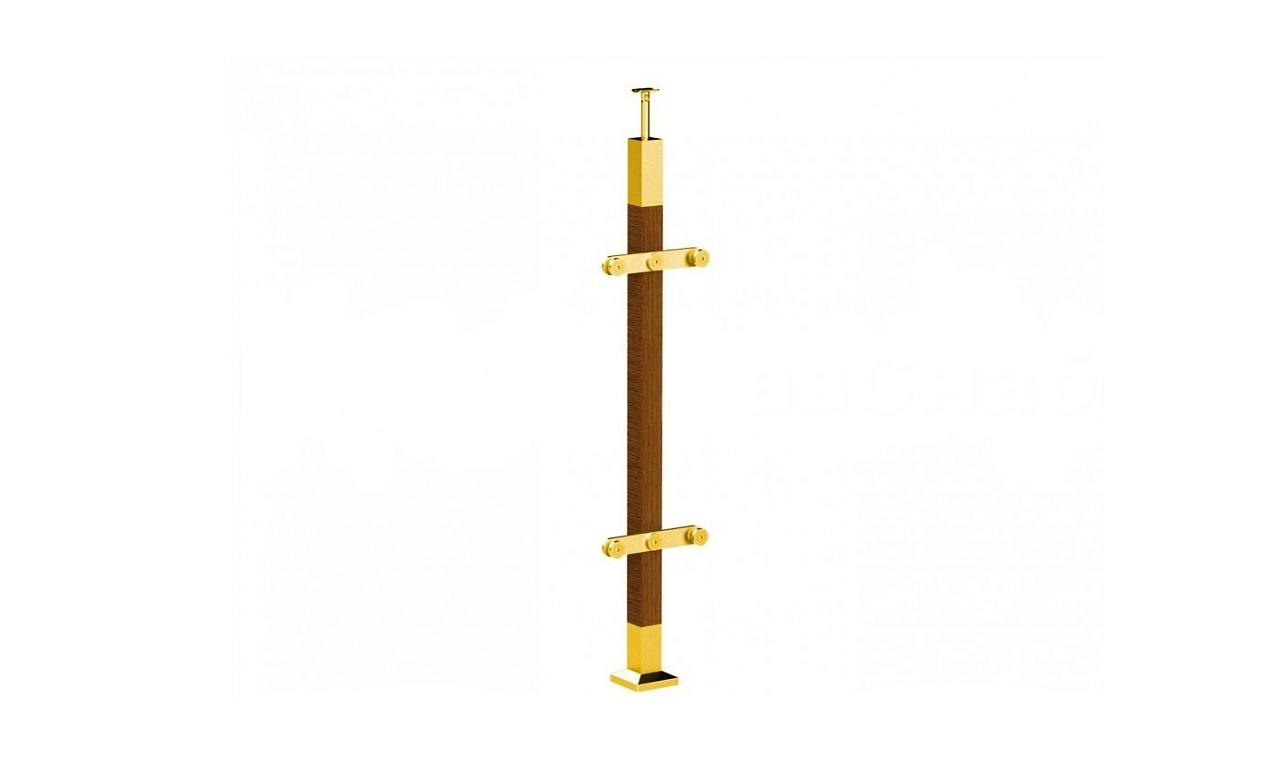 Готовая стойка 40х40х950 мм, деревянная, со вставками из нержавеющей стали 2х100 мм с 2 зажимными стеклодержателями, под золото k740-4-L-G купить в Красноярске