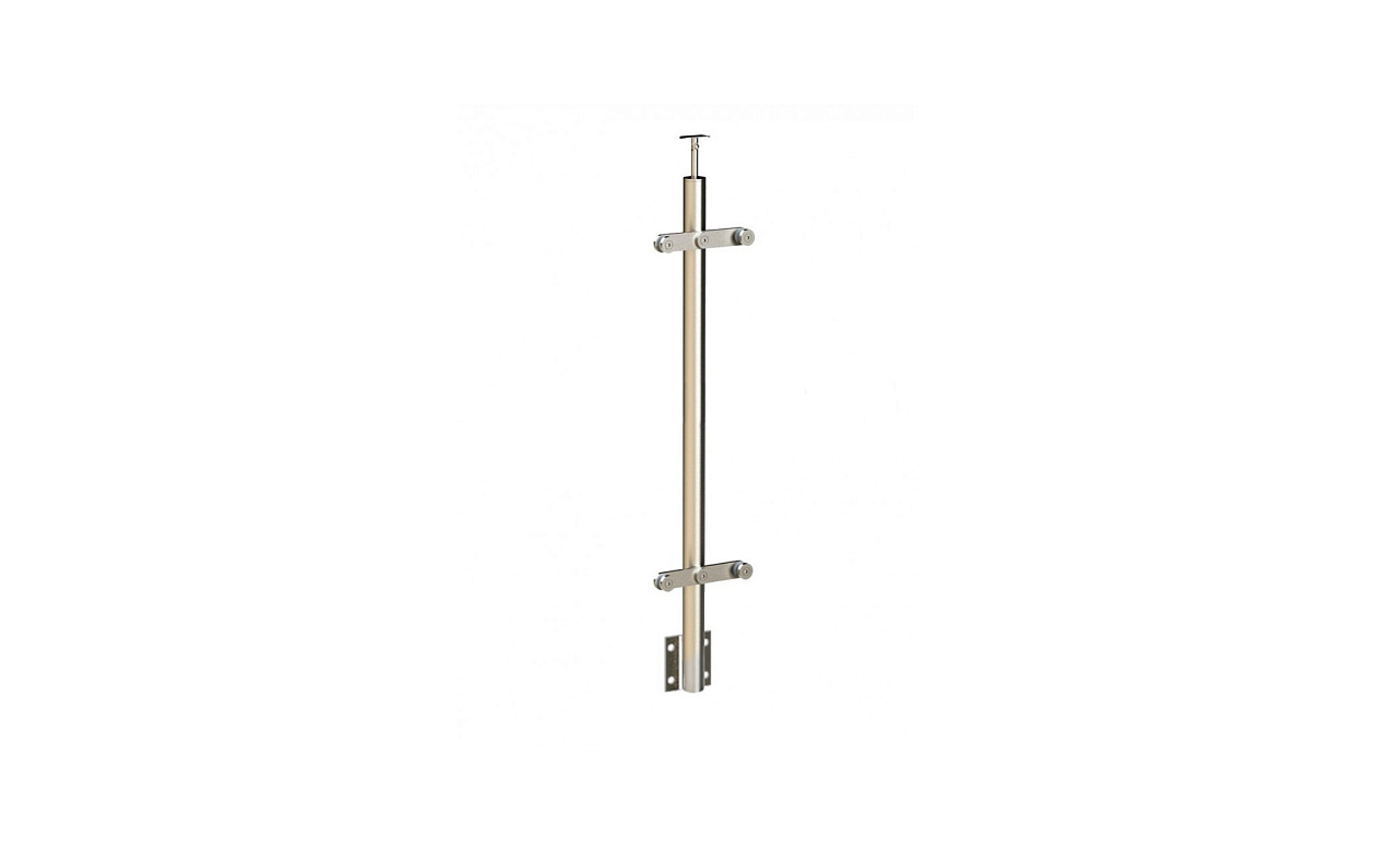 Стойка круглая Ø38.1: 2 пластинчатых стеклодержателя, полированная, боковой крепеж, высота 1200 мм (AISI 304) k759