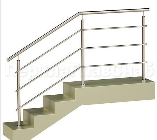 - Три ригеля на сварке, круглый поручень и круглые стойки для крыльца