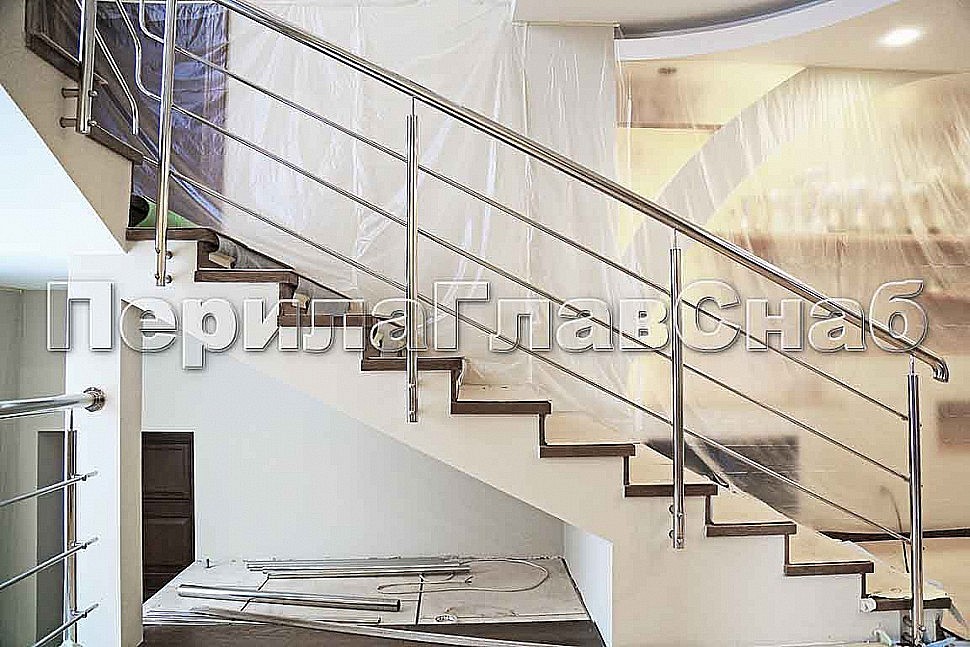 Ограждение лестницы из нержавеющей стали в частном доме пос. Лермантово