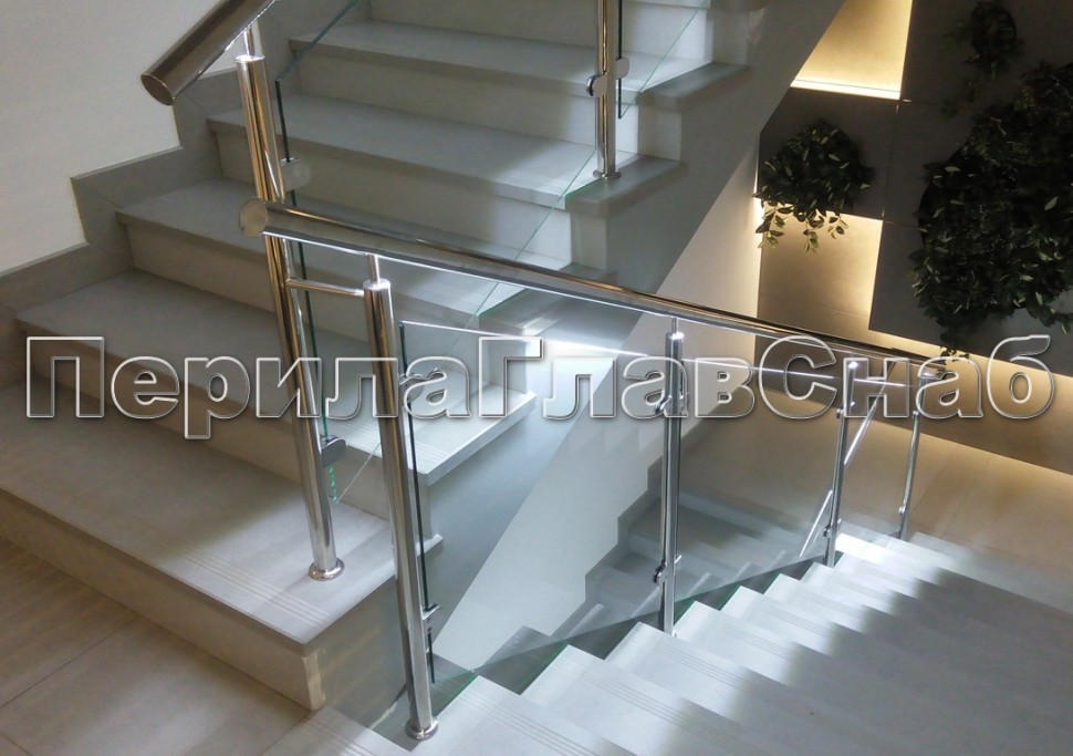 Ограждения лестницы без поручня с зажимными стеклодержателями и стойками