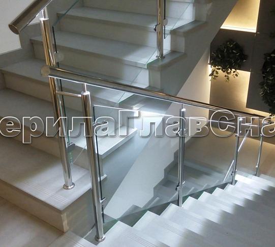 Ограждения лестниц на несущем стекле с подсветкой