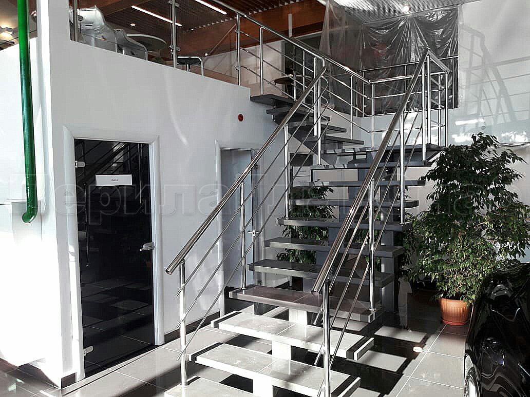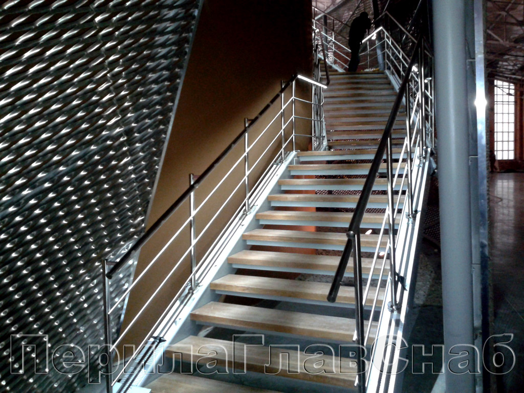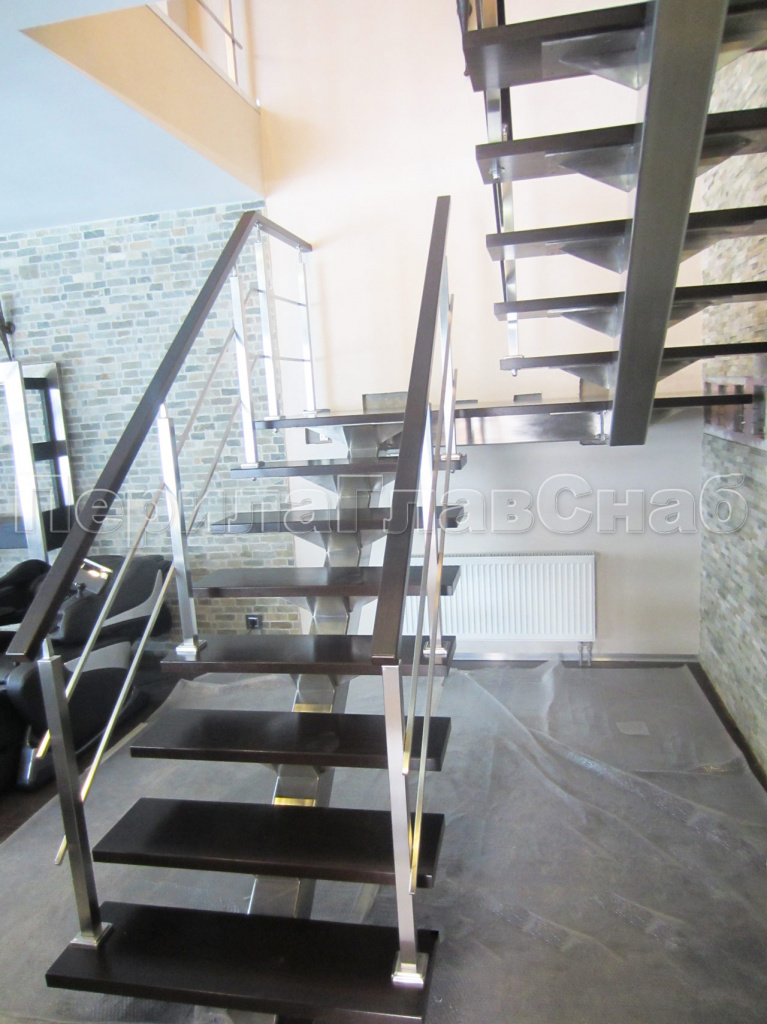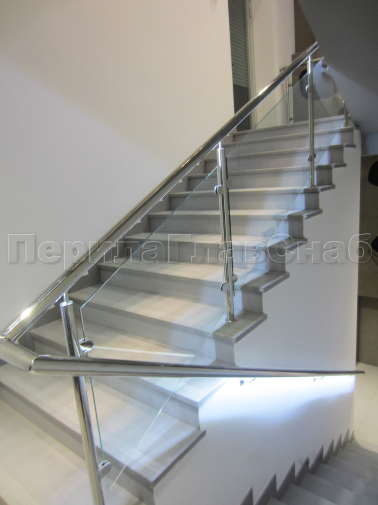 Ограждения лестницы без поручня с зажимными стеклодержателями и стойками