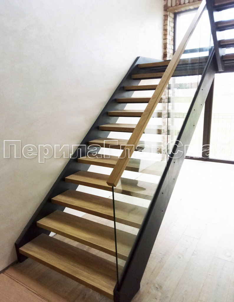 Ограждение лестницы с квадратными стойками и пластинчатыми стеклодержателями
