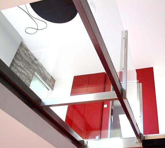 Стеклянное перекрытие из матового стекла на внутреннем балконе